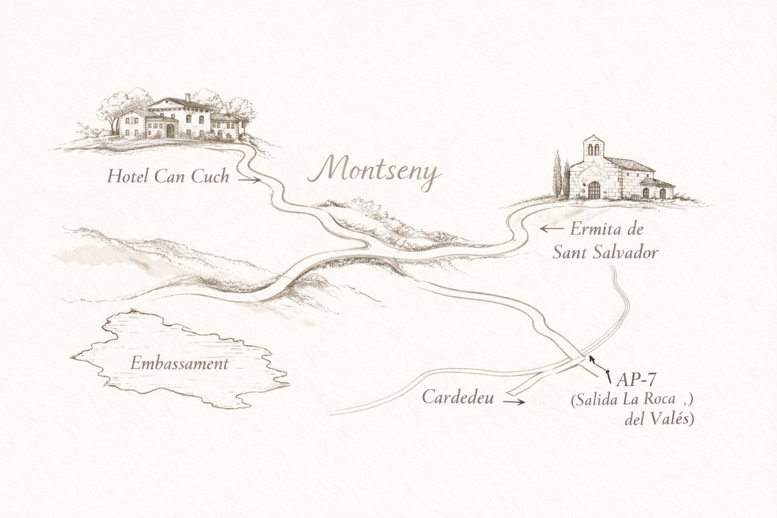 Si venís en vuestro coche, desde la salida de La Roca del Vallès podéis ir directamente hasta el Hotel Can Cuch.
